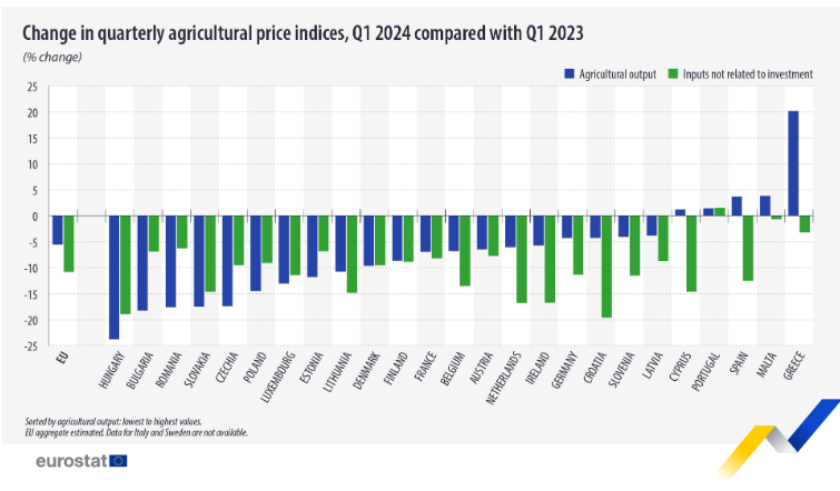 Cene v kmetijstvu v EU v prvem četrtletju upadle